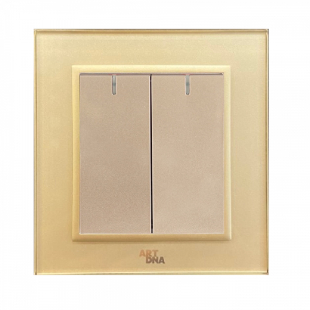 Bộ công tắc đôi 1 chiều-A78-K02A:Là dòng sản phẩm thiết bị điện châu âu cao cấp,nhập khẩu chính hãng ARTDNA.Sản phẩm ứng dụng vật liệu sản xuất mới là kính thạch anh,sản xuất trên dây chuyền công nghệ hàng đầu của Châu Âu .Mang đến người dùng trải nghiệm về Design hiện đại-thời thượng-đẳng cấp phong cách đức.Sự kết hợp hoàn hảo giữa kiểu dáng sản phẩm hình vuông và sắc màu Đen-Trắng-Vàng.sẽ là tuyệt tác chấm phá hòa vào không gian kiến trúc sang trọng của ngôi nhà bạn !