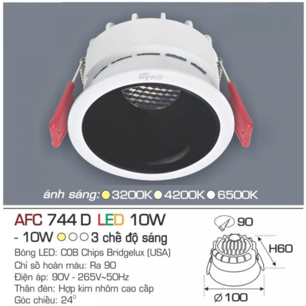 Tên sản phẩm: Đèn âm trần cao cấp Anfaco AFC 744T - 10W chóa đen đổi màu