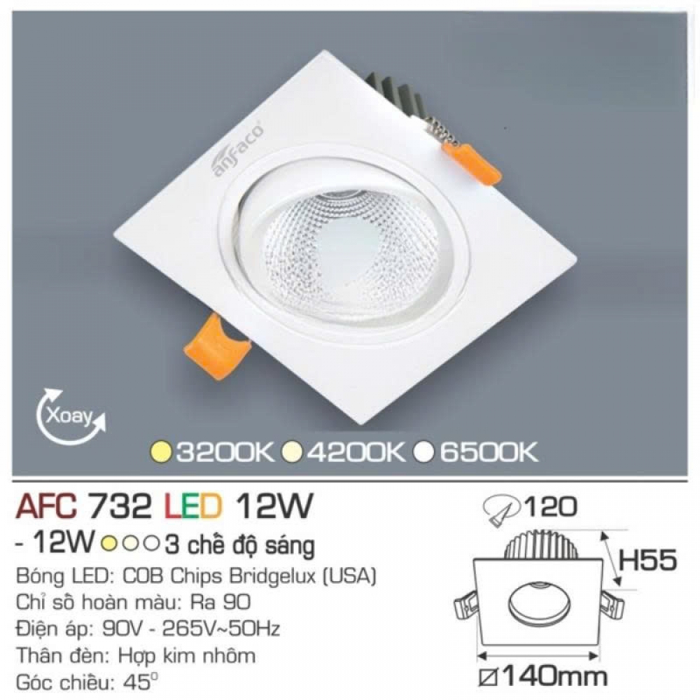 Tên sản phẩm: Đèn âm trần downlight Anfaco AFC 732 12W đổi màu