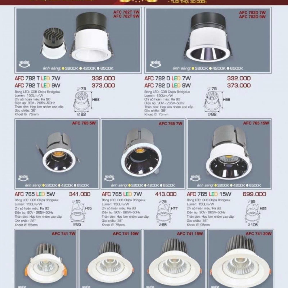 Ứng dụng: Với sự thiết kế sang trọng, độ bền cao (Bảo hành lên đến 3 năm), tiết kiệm điện và dễ lắp đặt, đèn LED downlight âm trần Anfaco AFC 782T 7W là sự lựa chọn thích hợp và hoàn hảo giúp kiến tạo nên không gian sang trọng cho nhiều công trình, dự án khi sử dụng trong thiết kế như: Căn hộ, nhà ở, phòng khách, phòng họp, văn phòng, phòng triển lãm, showroom, siêu thị, nhà hàng…