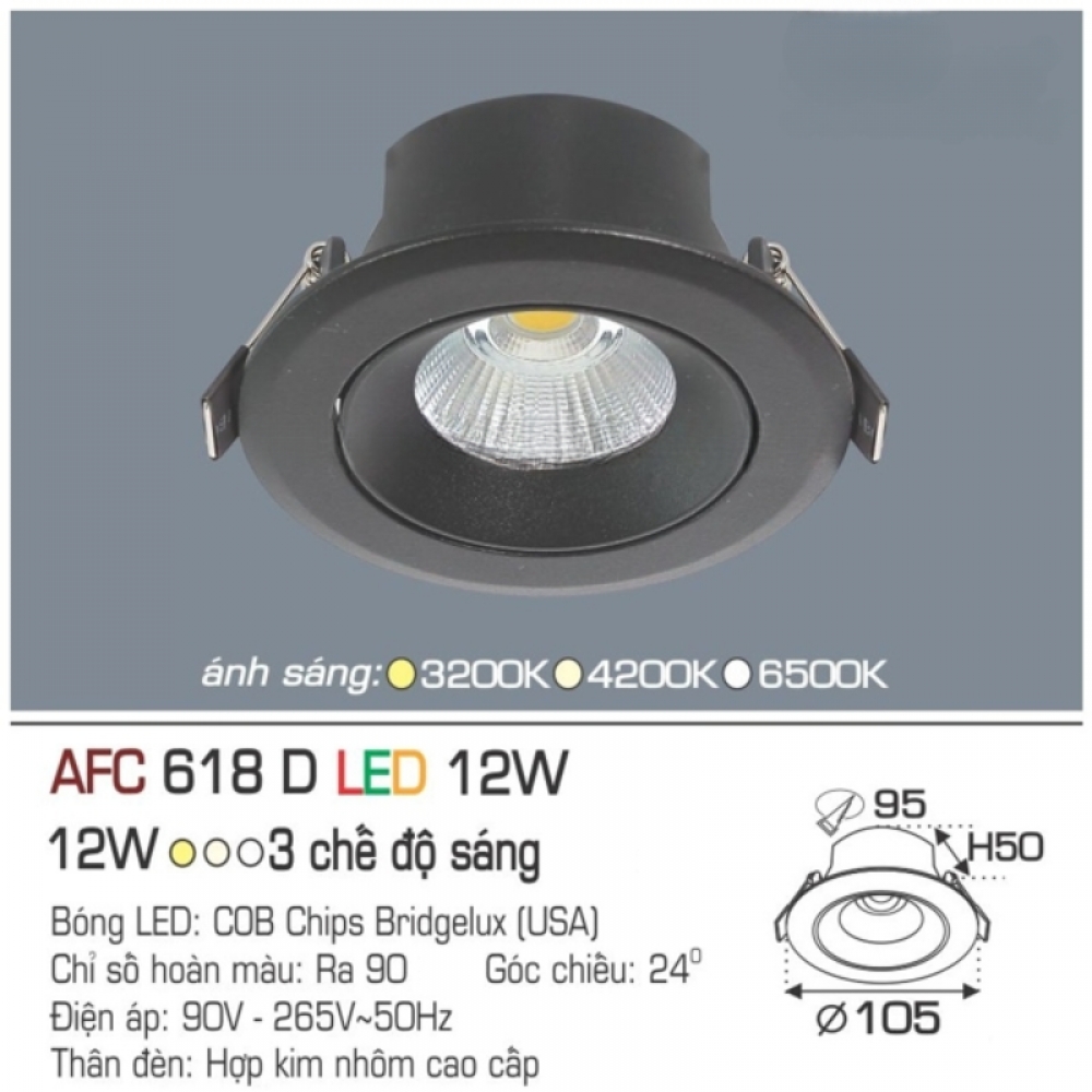 Chiếu điểm chính xác với góc chiếu 36°: Đèn led âm trần 12W AFC 618T Anfaco tạo luồng sáng tập trung, không tỏa rộng, lý tưởng để chiếu tượng, tranh treo tường, kệ trưng bày hoặc những chi tiết kiến trúc đặc biệt cần nhấn sáng. Dù công suất nhỏ, ánh sáng vẫn nổi bật nhờ chip LED chất lượng cao.
