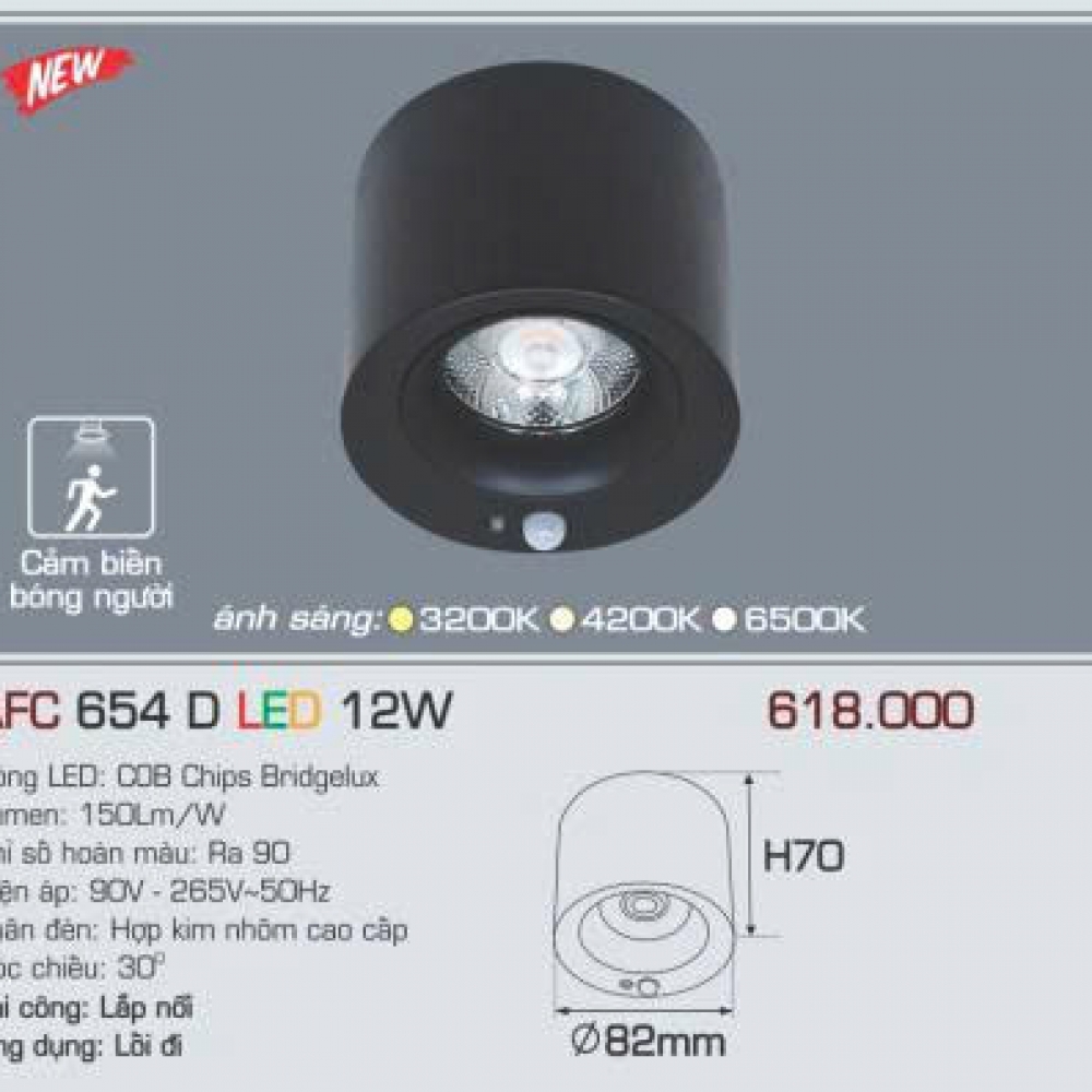Với nhiều ưu điểm nổi bật, đèn LED Anfaco phù hợp thiết kế cho nhiều công trình / dự án cao cấp. Đèn Anfaco gắn nổi LED AFC 654D 12W có chức năng cảm biến phù hợp dùng chiếu sáng cho những nơi cần cảnh báo khi có người, đồng thời tạo điểm nhấn cho các không gian như: Hành lang, ban công, toilet / WC…