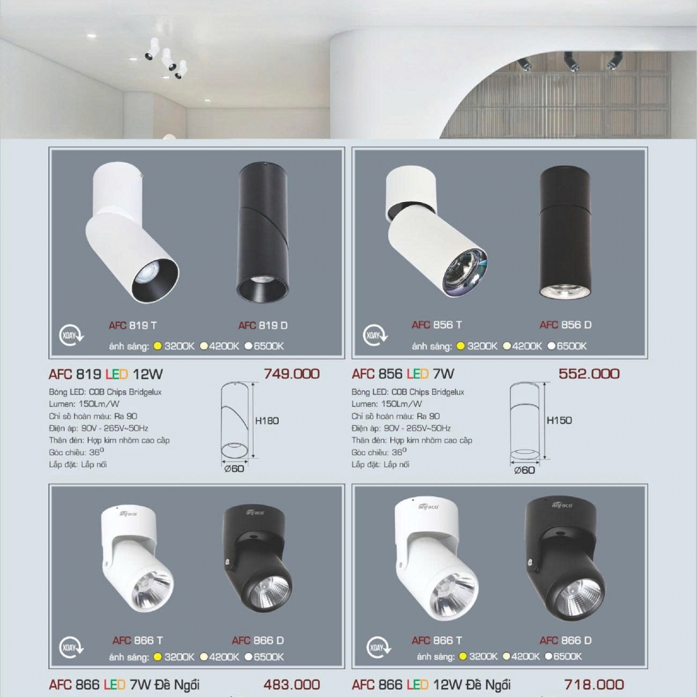 Ứng dụng: Với sự thiết kế sang trọng, độ bền cao, tiết kiệm điện và dễ lắp đặt đèn LED tiêu điểm Anfaco AFC 819T 12W giúp kiến tạo nên không gian sang trọng là sự lựa chọn thích hợp và hoàn hảo cho nhiều không gian khi sử dụng tại các công trình: Phòng trưng bày, Triển lãm, Showroom, Shop fashion, Trung tâm thương mại…