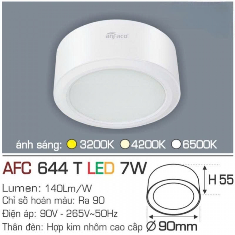 Tên sản phẩm: Đèn lon nối Anfaco AFC 644T vỏ trắng 7W