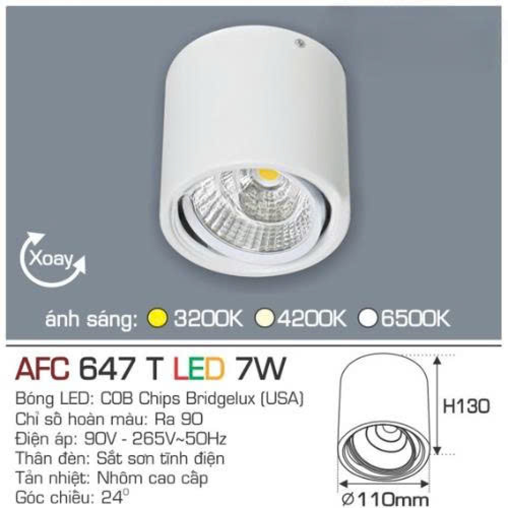 Tên sản phẩm: Đèn lon nổi Anfaco AFC 647T vỏ trắng 7W