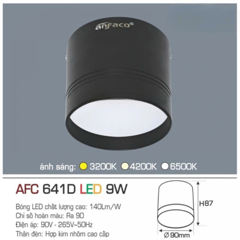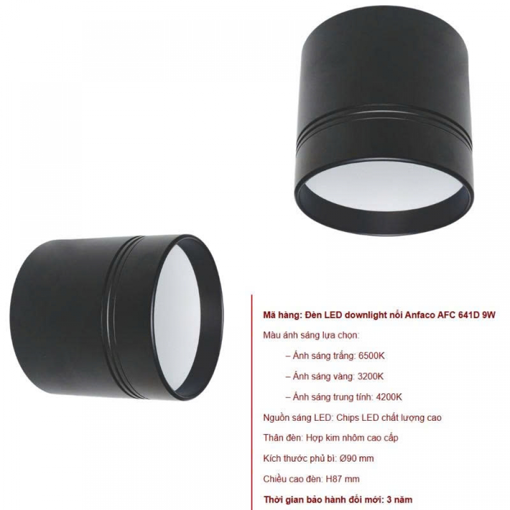 Tên sản phẩm: Đèn lon ốp nổi Anfaco AFC 641D vỏ đen 9W