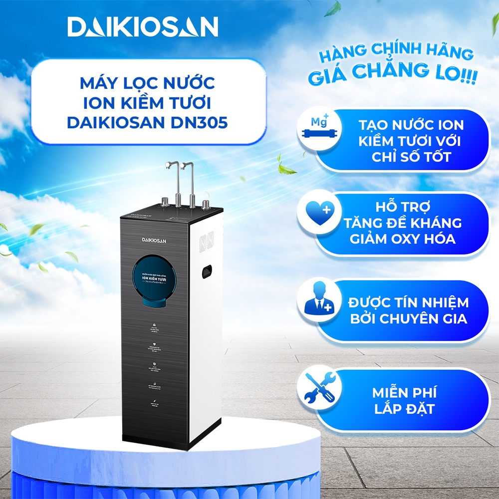 Máy lọc nước ion kiềm tươi nóng nguội lạnh Daikiosan DN305 khẳng định vượt trội hơn hẳn so với các máy lọc nước khác trên thị trường, bởi siêu phẩm không chỉ đáp ứng phù hợp lọc sạch nguồn nước ở Việt Nam mà còn mang đến nguồn nước ion kiềm với chỉ số pH, ORP, hydrogen ở mức lý tưởng, tốt cho sức khỏe.