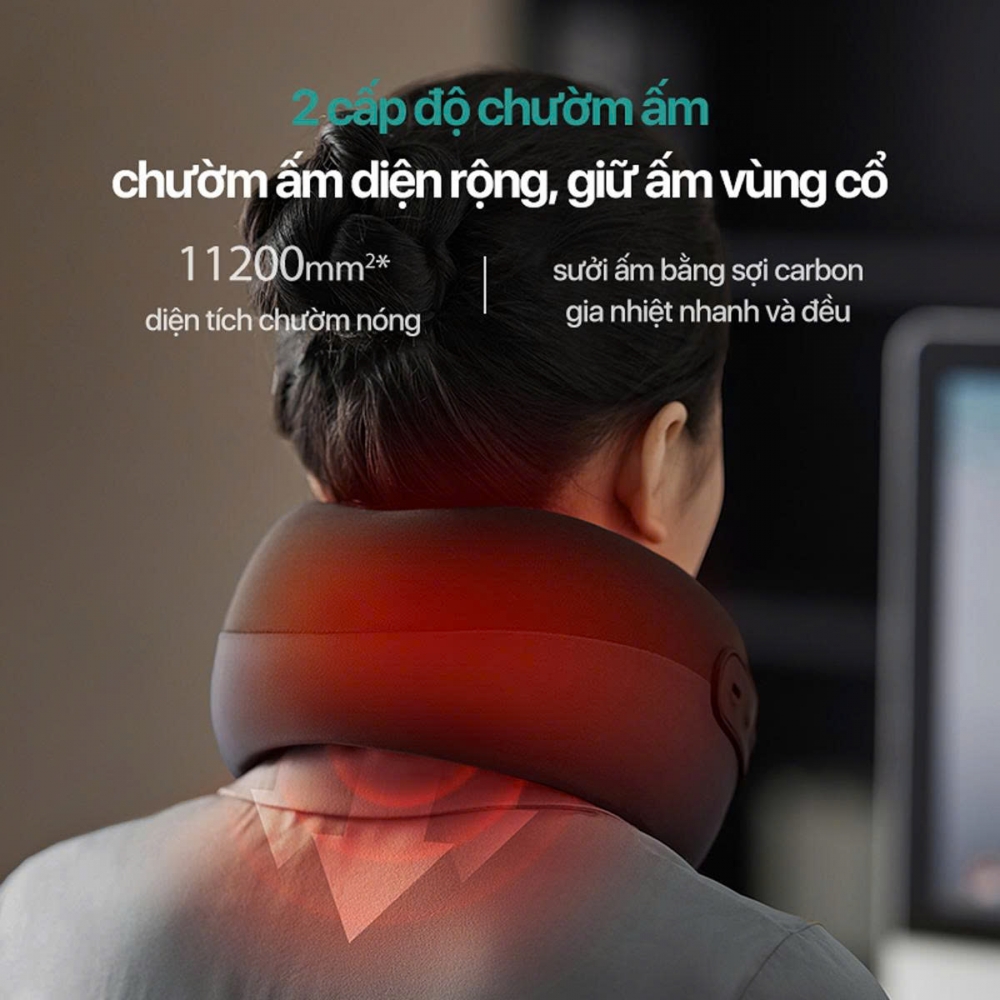 Bên cạnh đó, chế độ chườm nóng ấm áp giúp kích thích tuần hoàn máu, giảm sưng và mệt mỏi trong vùng cổ vai gáy. Bạn có thể điều chỉnh cấp độ nhiệt độ để đáp ứng nhu cầu và mong muốn của mình.